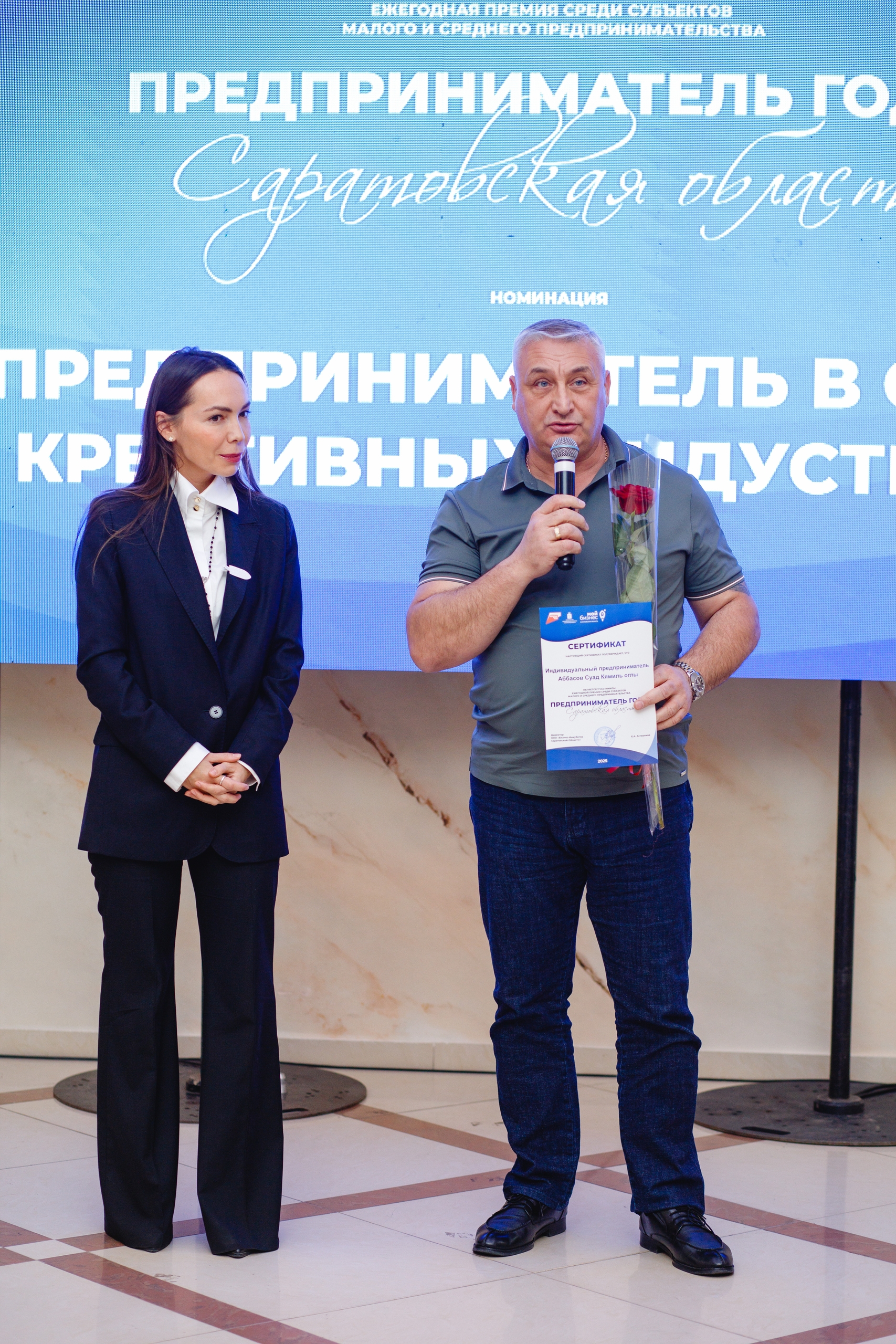 Церемония награждения лучших из лучших представителей бизнеса Саратовской области ПРЕДПРИНИМАТЕЛЬ ГОДА наш резидент Суад Аббасов был номинирован на эту премию. "Это премия заслуга большого труда всей команды бизнес клуба ВЕКТОР" сказал в своем выступлении С.Аббасов.